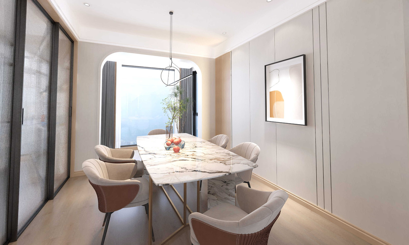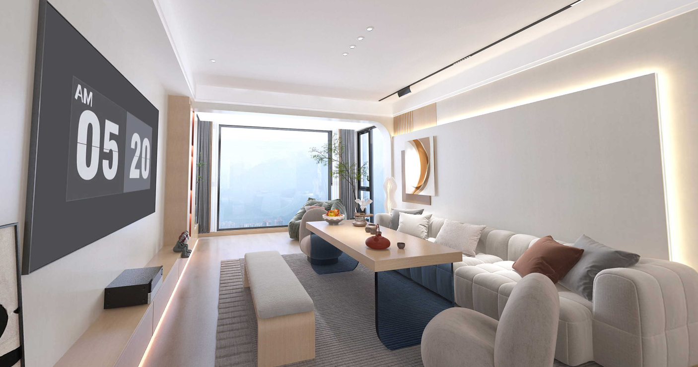 設(shè)計(jì)說明:以干凈、明亮的暖色調(diào),表達(dá)女主對(duì)生活的包容和內(nèi)心的柔軟??蛷d兼顧茶室功能,讓品茶會(huì)友、親子互動(dòng)等,使用更為靈活,共享影音美好。入戶巧設(shè)瑜伽房,主臥打通小臥室做衣帽間,次臥放沙發(fā)床秒變小會(huì)客廳,也可以是娛樂室,偶爾邀來閨蜜,私享靜謐時(shí)光。正如女主對(duì)生活的態(tài)度一樣,精致放松、獨(dú)一無二。慢下來,才能真正地享受歲月靜好。認(rèn)真生活,便能找到生活藏起來的糖果。